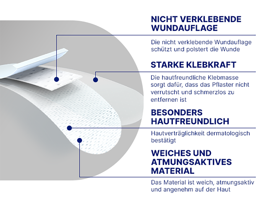 - Das große Pflaster überzeugt durch sein atmungsaktives Material
