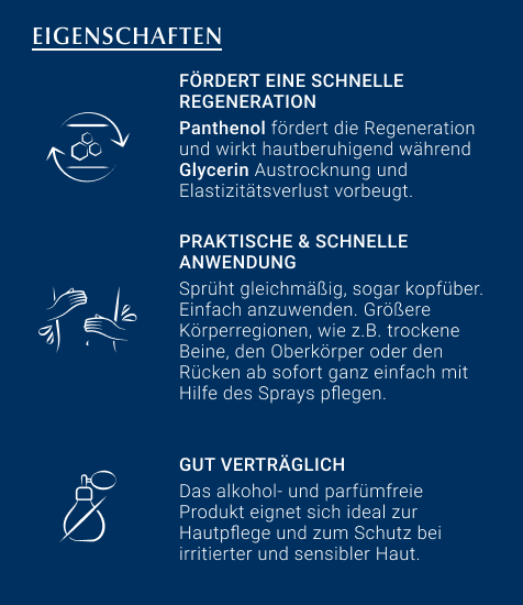 Damit irritierte Haut noch weiter beruhigt wird, enthält das Spray Panthenol und Bisabolol.