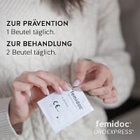 - femidoc UROEXPRESS dient zur Unterstützung der Behandlung von durch E. coli verursachten Harninfektionen in der Blase sowie zum Schutz vor wiederholt auftretenden Harnwegsinfektionen (Blasenentzündung).