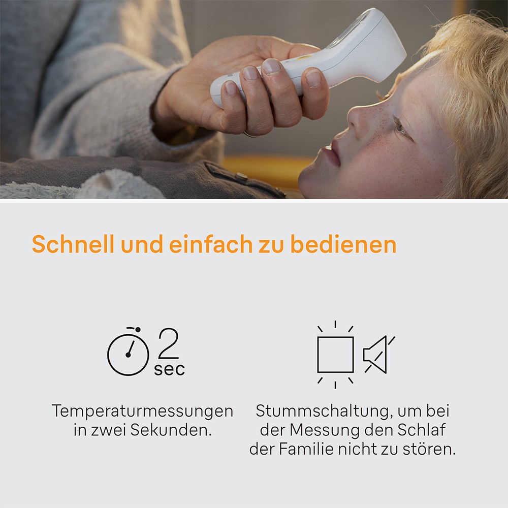Das Braun Sensian 3 Stirnthermometer erfasst die Temperatur ohne Hautkontakt. Dies ermöglicht eine besonders hygienische Anwendung für die ganze Familie und reduziert das Risiko der Übertragung von Keimen. Dank der innovativen Technologie bietet das Thermometer eine schnelle Messung in nur 2 Sekunden.Nachtmodus – Störungsfreie Messung im Dunkeln