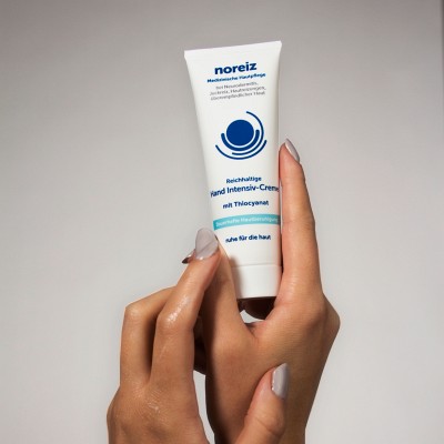 Verwenden Sie eine kleine Portion der sehr ergiebigen noreiz Reichhaltige Hand Intensiv-Creme jederzeit bei gereizter, trockener und beanspruchter Haut.