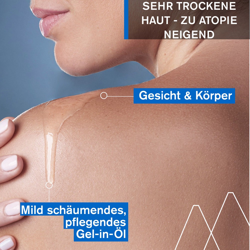 REINIGENDES ÖL DUSCHE UND BADDieses Reinigungsöl schützt gegen das Austrocknen der Haut und lindert das Gefühl von Kribbeln. Sein feiner und extrem weicher Schaum verleiht bei trockenen bis sehr trockenen Hauttypen ein sofortiges und langanhaltendes Hautgefühl.