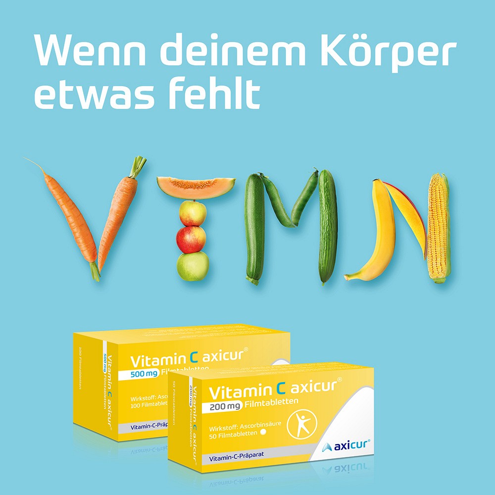 Wirkstoff: Ascorbinsäure. Anwendungsgebiete: Vitamin-C-Präparate zur Behandlung von Vitamin-C-Mangel-Krankheiten.Zusätzl. bei Vit C axicur 200 mg: Zur Vorbeugung eines Vitamin-C-Mangels, wenn die ausreichende Zufuhr durch Ernährung nicht gesichert ist. Zusätzl. bei Vit C axicur 500 mg: Zur Behandlung zur Verhinderung von Rückfällen bei Cystin-Harnsteinleiden in Kombination mit Harnalkalisierungsmaßnahmen. Beide Arzneimittel enthalten Lactose.