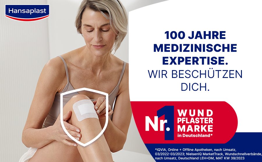 Hansaplast Pflaster mit dem Bacteria-Shield-Symbol schützen vor Schmutz und 99 % der Bakterien, um eine komplikationsfreie Wundheilung zu ermöglichen.