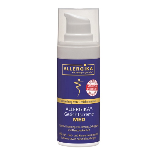 ALLERGIKA®- Gesichtscreme MED wird bei trockenen Gesichtsekzemen (z.B. bei atopischen, irritativen oder kontaktallergischen Gesichtsekzemen) eingesetzt. Durch die einzigartige W/O-Formulierung wird die gestörte Hautbarriere langfristig verbessert, Irritationen und Rötungen werden reduziert.