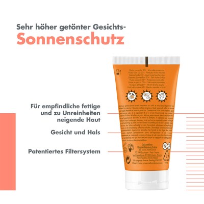 AVENE THERMAL SPRING WATER (AVENE AQUA). C12-15 ALKYL BENZOATE. DIETHYLAMINO HYDROXYBENZOYL HEXYL BENZOATE. ETHYLHEXYL TRIAZONE. PHENYLENE BIS-DIPHENYLTRIAZINE. WATER (AQUA). GLYCERIN. BIS-ETHYLHEXYLOXYPHENOL METHOXYPHENYL TRIAZINE. TITANIUM DIOXIDE (CI 77891). POTASSIUM CETYL PHOSPHATE. ORYZA SATIVA (RICE) STARCH (ORYZA SATIVA STARCH). ISONONYL ISONONANOATE. GLYCERYL LAURATE. GLYCERYL STEARATE. STEARYL ALCOHOL. TAPIOCA STARCH. VP/EICOSENE COPOLYMER. ALUMINA. BENZOIC ACID. CAPRYLIC/CAPRIC TRIGLYCERIDE. CAPRYLYL GLYCOL. FRAGRANCE (PARFUM). GLYCERYL BEHENATE. GLYCERYL DIBEHENATE. IRON OXIDES (CI 77492). IRON OXIDES (CI 77491). IRON OXIDES (CI 77499). ISOPROPYL MYRISTATE. ISOPROPYL TITANIUM TRIISOSTEARATE. POLYHYDROXYSTEARIC ACID. PPG-1-PEG-9 LAURYL GLYCOL ETHER. PROPYLENE CARBONATE. STEARALKONIUM HECTORITE. TOCOPHERYL GLUCOSIDE. TRIBEHENIN. XANTHAN GUM. ZINC GLUCONATE.*Durchschnittlich im Vergleich zum bisherigen Sortiment mit SPF 50+ bezogen auf Sonnencremes/Sonnenfluids/Cleanance Sonnenfluids.