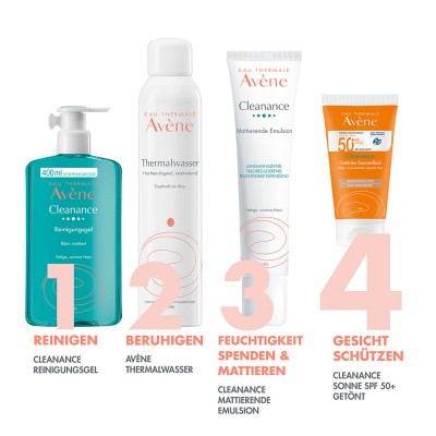 Das Avène Cleanance Getönte Sonnenfluid SPF 50+ basiert auf dem beruhigenden, stärkenden und ausgleichenden Avène Thermalwasser.