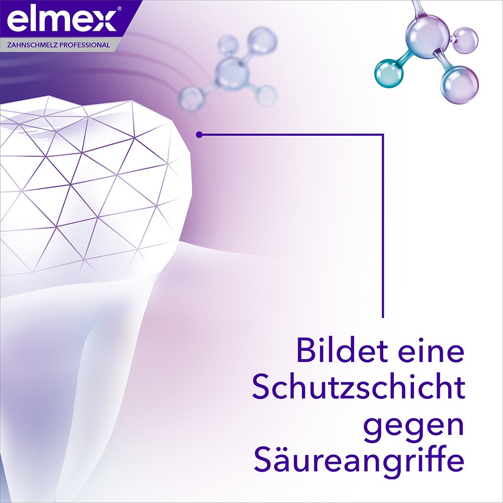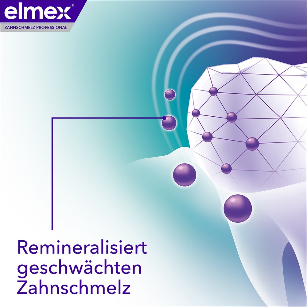 Die elmex Zahnpasta zur Stärkung des Zahnschmelzes enthält eine einzigartige Mikroversiegelungs-Technologie, die klinisch erwiesen einen effektiveren Schutz vor Zahnschmelz-Abbau bietet als herkömmliche Zahnpasta. Mineralien werden dem Zahnschmelz zugeführt und kräftigen so geschwächte Bereiche der Zähne.