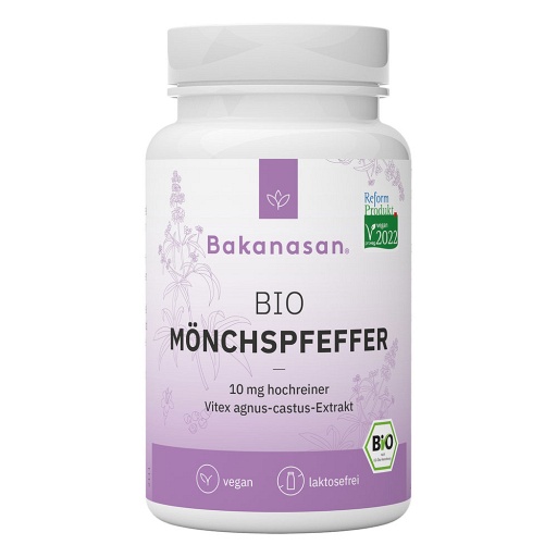 Bakanasan Bio Mönchspfeffer enthält einen reinen, hochdosierten Mönchspfeffer-Extrakt (Vitex agnus-castus) aus kontrolliert biologischem Anbau und ist frei von gentechnisch veränderten Rohstoffen.Mönchspfeffer zählt zu den Eisenkrautgewächsen und wird seit 2.500 Jahren traditionell in der Frauenheilkunde eingesetzt. Mit seiner Vielzahl an Nährstoffen wie Bitterstoffen, sekundären Pflanzenstoffen, ätherischen Ölen und ungesättigten Fettsäuren, unterstützt der Mönchspfeffer einen normalen Zyklus und die Balance des Hormonhaushaltes.