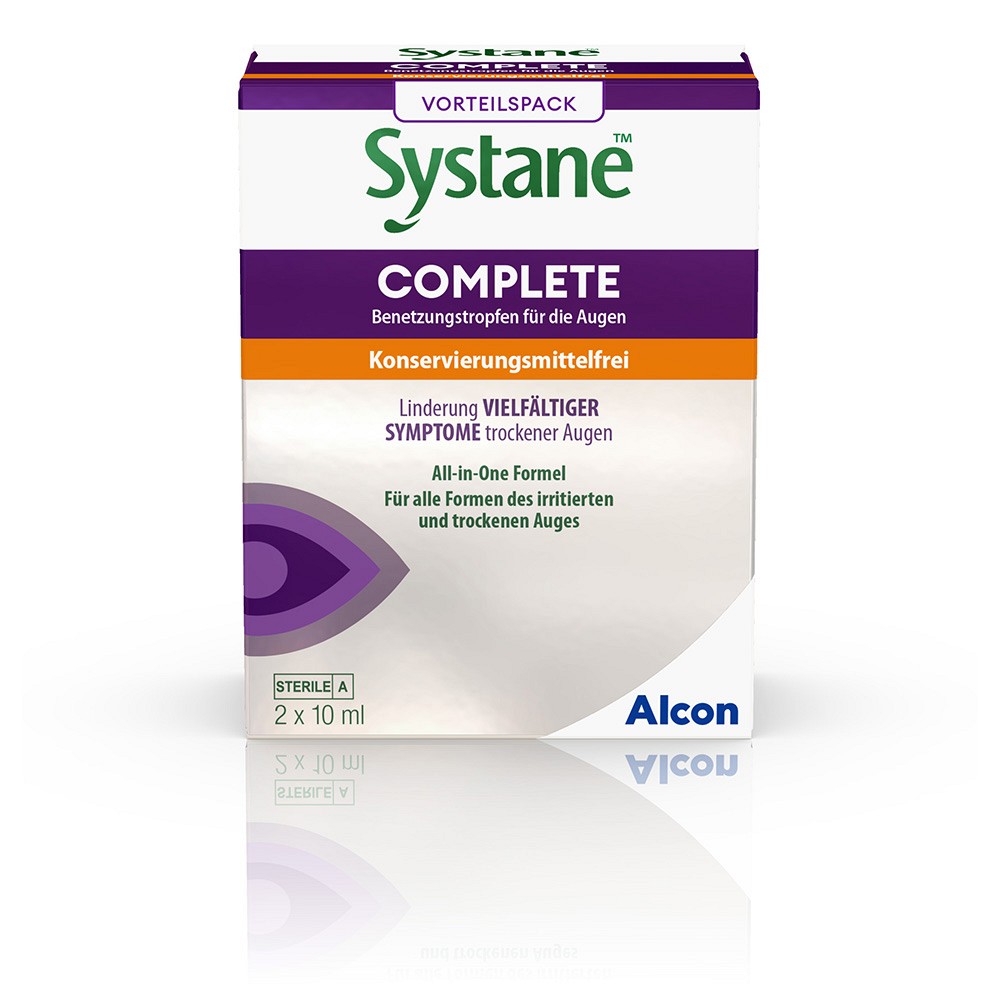 Trockene Augen entstehen dann, wenn entweder die Menge oder die Qualität der von den Tränendrüsen produzierten Tränenflüssigkeit unzureichend ist oder die Tränen zu schnell verdunsten. Die Folge sind trockene, müde und gereizte Augen.Systane® COMPLETE ohne Konservierungsmittel bieten für trockene und gereizte Augen eine All-in-One Lösung: Lipidtropfen in Nanogröße sind eingebettet in ein viskoelastisches HighTech Netzwerk aus HP-Guar. Die winzigen Lipidtropfen benetzen die Augen – sie beruhigen, befeuchten und bauen den Tränenfilm wieder auf, für eine spürbare Linderung der Symptome trockener Augen. Die Augentropfen sind empfohlen für alle Formen des Trockenen Auges, inkl. Mischformen und bei Symptomen ungeklärten Ursprungs.
