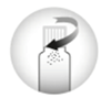 Die Vitamine befinden sich in der weißen Verschlusskappe. Drehen Sie die Verschlusskappe im Uhrzeigersinn, bis sich die Deckelkammer mit dem Pulver