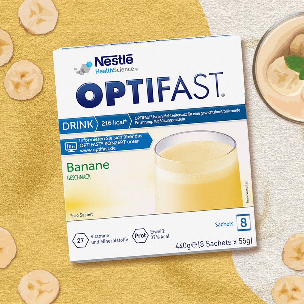 - SO LECKER KANN ABNEHMEN SEIN – der OPTIFAST® Diät Shake schmeckt angenehm süß nach Banane, auch erhältlich in den Geschmacksrichtungen Schokolade, Vanille, Erdbeere, Kaffee