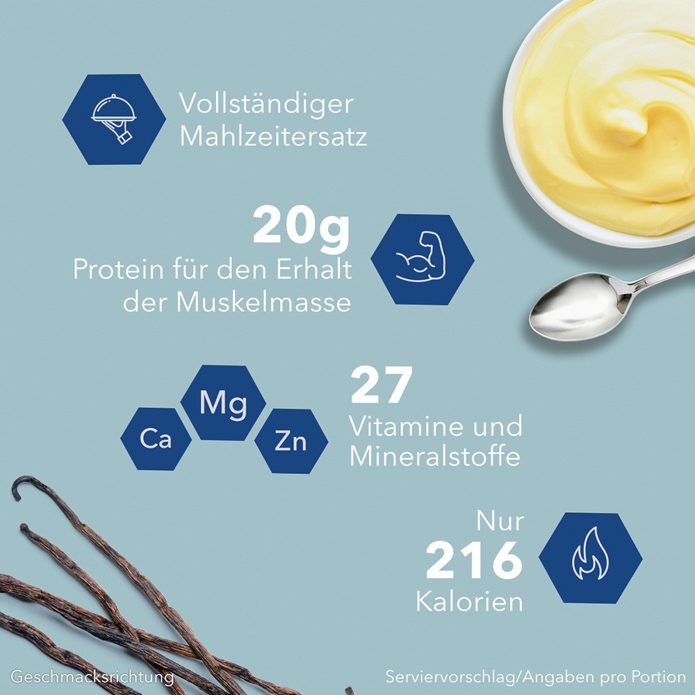 Das Ersetzen von einer der täglichen Hauptmahlzeiten im Rahmen einer kalorienarmen Ernährung durch einen solchen Mahlzeitersatz trägt dazu bei, das Gewicht nach Gewichtsabnahme zu halten. Das Ersetzen von zwei der täglichen Hauptmahlzeiten im Rahmen einer kalorienarmen Ernährung durch einen solchen Mahlzeitersatz trägt zu Gewichtsabnahme bei.Anwendungsempfehlung und Lagerung: