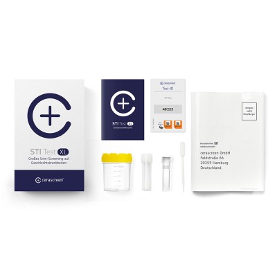 Mit unserem großen Geschlechtskrankheiten-Test, dem cerascreen STI XL Test, lassen Sie eine Urinprobe auf die Erreger von verschiedenen Geschlechtskrankheiten diskret von Zuhause aus analysieren.
