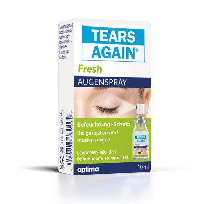 TEARS AGAIN Fresh stabilisiert und schützt den Tränenfilm und verbessert die Befeuchtung der Augenoberfläche und der Augenlider.Zur Behandlung und Linderung externer, umweltbedingter Reizungen des Auges durch Wiederherstellung des gestörten Tränenfilms.