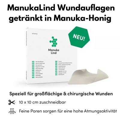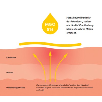 ManukaLind eignet sich zur Behandlung von Wunden und Hautirritationen in allen Stadien der Wundheilung. Die einzigartige Zusammensetzung der ManukaLind Produkte beruht auf dem neuseeländischen Phänomen des Manuka Honigs. Dieser wird in Neuseeland von Honigbienen aus der Südseemyrte (Leptospermum scoparium - oder auch Manuka-Strauch) gewonnen und wird dort seit vielen Generationen als Heilmittel verwendet. Er besitzt stark antibakterielle und zellerneuernde Eigenschaften und fördert so die Wundheilung unter optimal feuchten Bedingungen des Wundmilieus.ManukaLind enthält Manuka-Honig mit einem besonders hohen Anteil an Methylglyoxal (MGO 514+), einem Zuckerabbauprodukt, das in bis zu 100-fach höherer Konzentration vorhanden ist als in herkömmlichen Honigsorten. Aufgrund dieses einzigartigen Naturphänomens und der damit einhergehenden antibakteriellen Eigenschaften wird Manuka-Honig von Experten weltweit geschätzt.