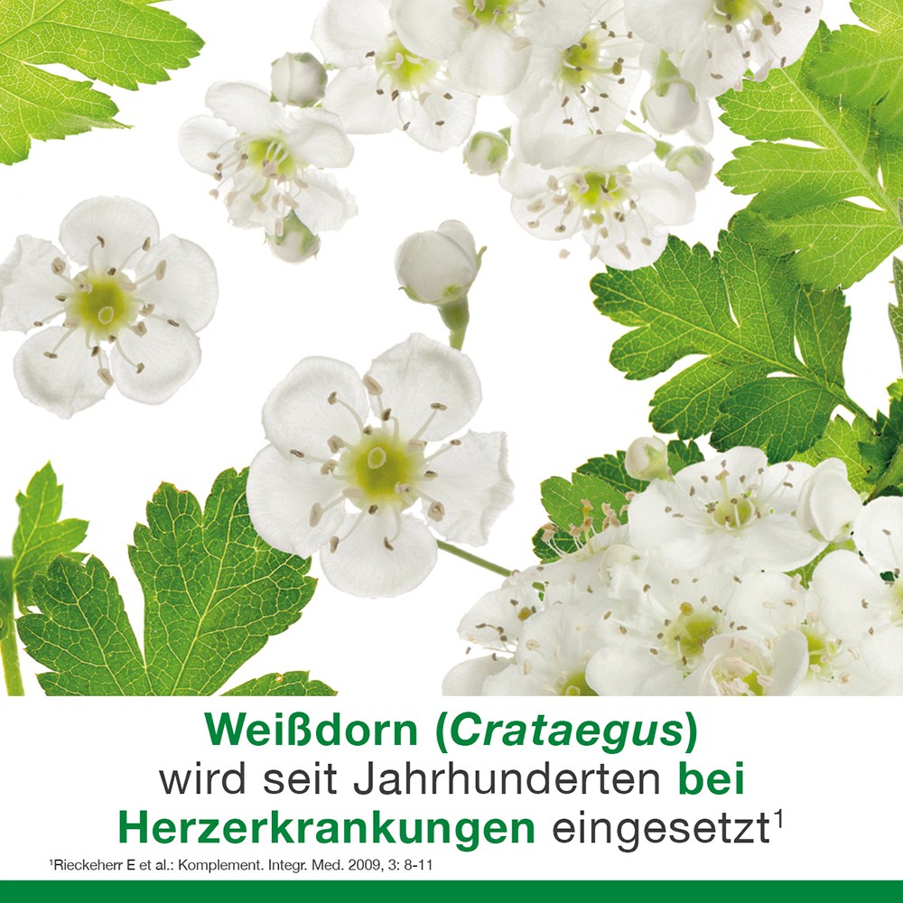 Wirkstoff: Trockenextrakt aus Weißdornblättern mit Blüten.