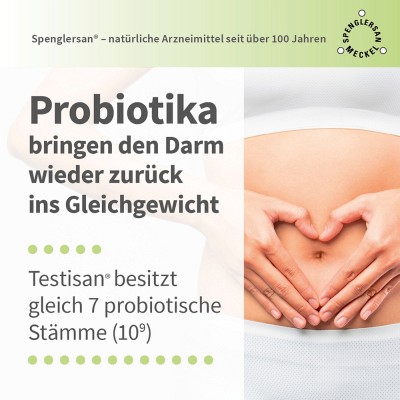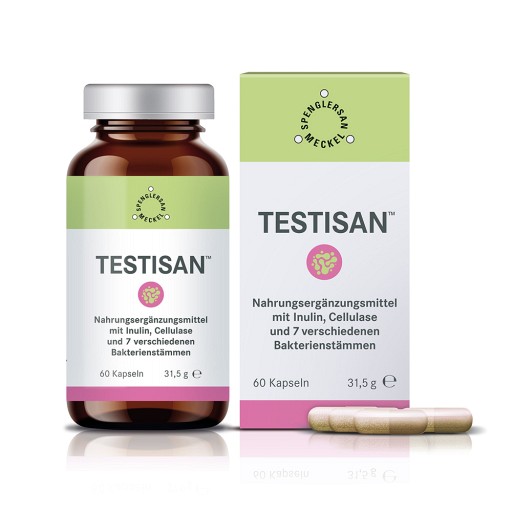 Testisan ist ein Probiotikum zum natürlichen Aufbau und der Stabilisierung der Darmflora. Es beinhaltet sieben Bakterienstämme, die dafür sorgen, dass sich die Darmflora regeneriert und sich die richtigen Bakterien im Darm ansiedeln. Als Probiotika werden Bakterien bezeichnet, die den Verdauungstrakt des Körpers auskleiden und den Körper bei der Aufnahme von Nährstoffen unterstützen und Infektionen bekämpfen.- Magensaftresistent, 100% vegan, gluten- und laktosefrei, ohne Farb- und Konservierungsstoffe