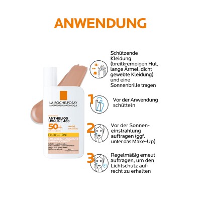 Das Anthelios Invisible Fluid Getönt UVMune 400 LSF 50+ von La Roche Posay mindestens eine halbe Stunde vor dem Sonnenbaden und nach der täglichen Hautpflegeroutine großzügig auf das Gesicht auftragen, sorgfältig verteilen und gut einziehen lassen.