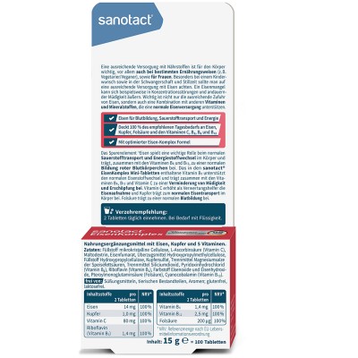 SANOTACT Eisen Komplex m.B2 Kupfer & Folsäure Tab. 100 St