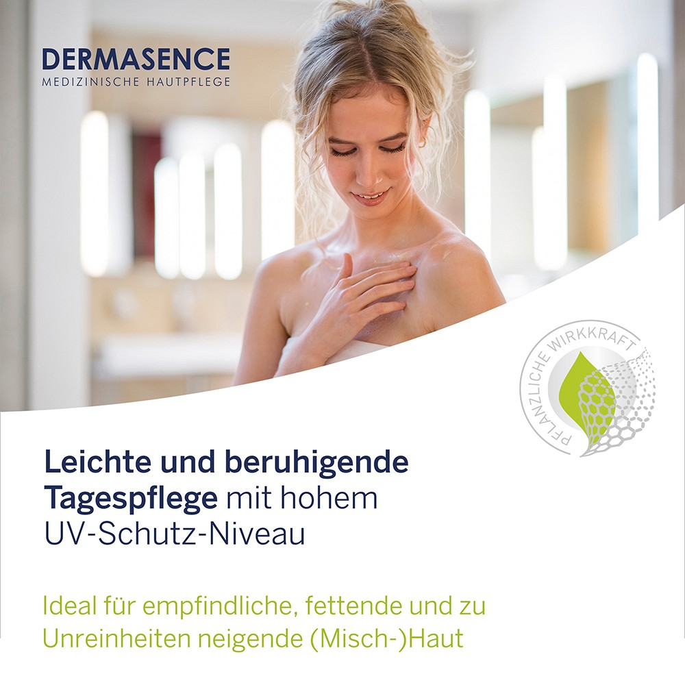 - Die leichte Tagespflege mit hohem UV-Schutz-Niveau ist ideal für empfindliche, fettende und zu Unreinheiten neigende (Misch-)Haut
