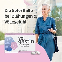 Velgastin® Blähungen Kautabletten sind ein Entschäumer und können zur symptomatischen Behandlung gasbedingter Magen-Darm-Beschwerden angewendet werden:- Bauchschmerzen, Unwohlsein und Völlegefühl