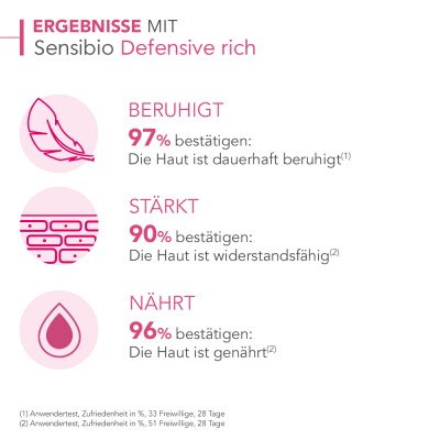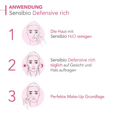 Ideal geeignet bei empfindlicher Haut, bei sensibilisierter Haut und bei trockener Haut.Was ist der Unterschied zwischen Sensibio Defensive Rich und Sensibio Defensive:
