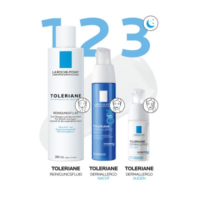 So kann auch hochsensible Haut sanft gereinigt werden, ohne Hautreizungen hervorzurufen. Zudem eignet sich die TOLERIANE Dermallergo Creme als Tagespflege und TOLERIANE Dermallergo Augen als spezielle Pflege für die empfindliche Augenpartie.