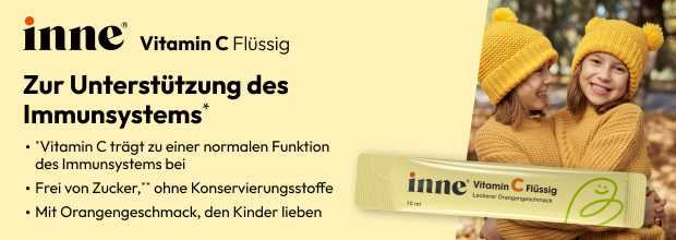 inne Vitamin C Flüssig ist ein Nahrungsergänzungsmittel für Kinder. Inne wurde für seine innovativen Zusammensetzungen und kindgerechte Anwendungsformen mehrfach ausgezeichnet.Warum inne Vitamin C Flüssig?