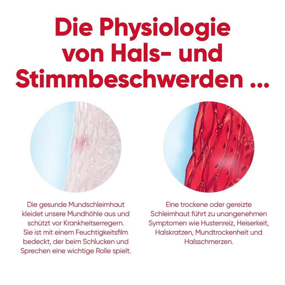So können Symptome wie Hustenreiz, Heiserkeit, Halskratzen und Mundtrockenheit langanhaltend gelindert werden.