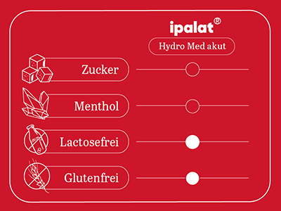 ipalat Hydro Med akut ist zucker-, lactose-, gluten- und mentholfrei.