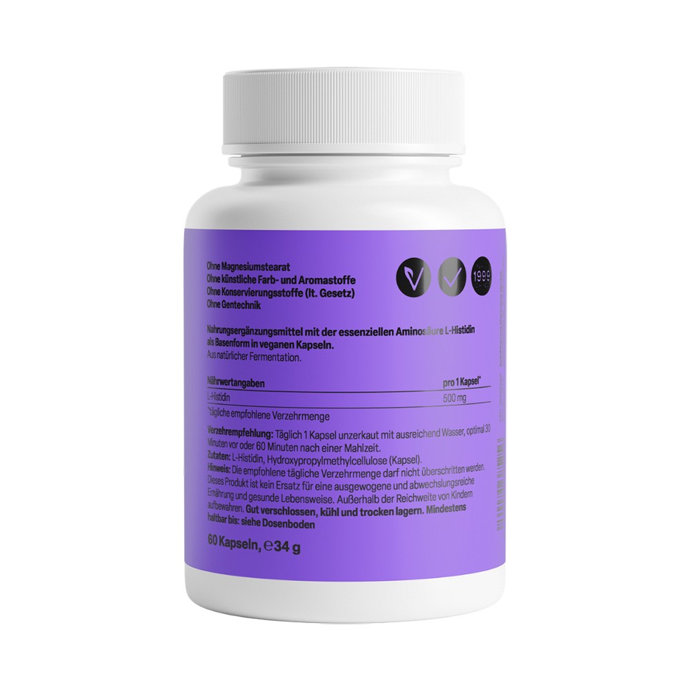 - High-quality ingredients: Our L-Histidine 500 mg capsules contain only 100 % pure ingredients