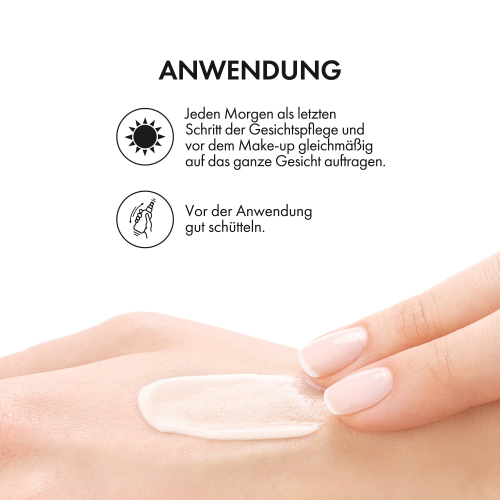 Für optimale Ergebnisse empfiehlt sich die vorherige Pflege der Haut mit dem NORMADERM Anti-Unreinheiten Serum, sowie der NORMADERM PHYTOSOLUTION Gesichtspflege für unreine Haut. Bei längerem Aufenthalt in der Sonne sollte der Sonnenschutz regelmäßig erneuert werden, um die Schutzwirkung aufrechtzuerhalten. Mittagshitze am besten gänzlich meiden.