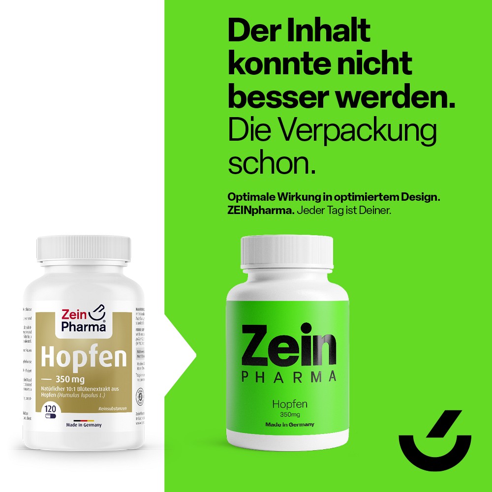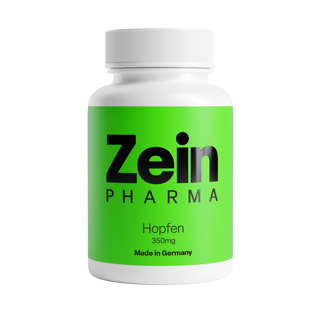 Hopfen (Humulus lupulus L.) zählt zur Familie der Cannabinaceae und kommt ursprünglich aus dem asiatischen Raum, hat sich über die Jahrhunderte aber auch im europäischen Raum verbreitet. Der eigentlich im Zusammenhang mit der Bierherstellung bekannte Kletterpflanze ist reich an sekundären Pflanzenstoffen, bereits seit vielen Jahren wird ihre beruhigende und schlaffördernde Wirkung erforscht. [1,2]Besonders auffällig sind die Blüten des Hopfens, welche einen ausgesprochen hohen Anteil der bioaktiven sekundären Pflanzenstoffe beinhalten. Zu diesen bioaktiven Pflanzenstoffen gehören unzählige Unterklassen wie beispielsweise Terpene, Bitterstoffe oder Flavonolglykoside. Sie sind sowohl für den bitteren Geschmack als auch für die bioaktive Wirkung im Körper verantwortlich. Die Hopfen Extrakt 350 mg Kapseln von ZeinPharma® sind auf Grund von ihrer laborgeprüften Qualität ideal zur Ergänzung der Ernährung geeignet.