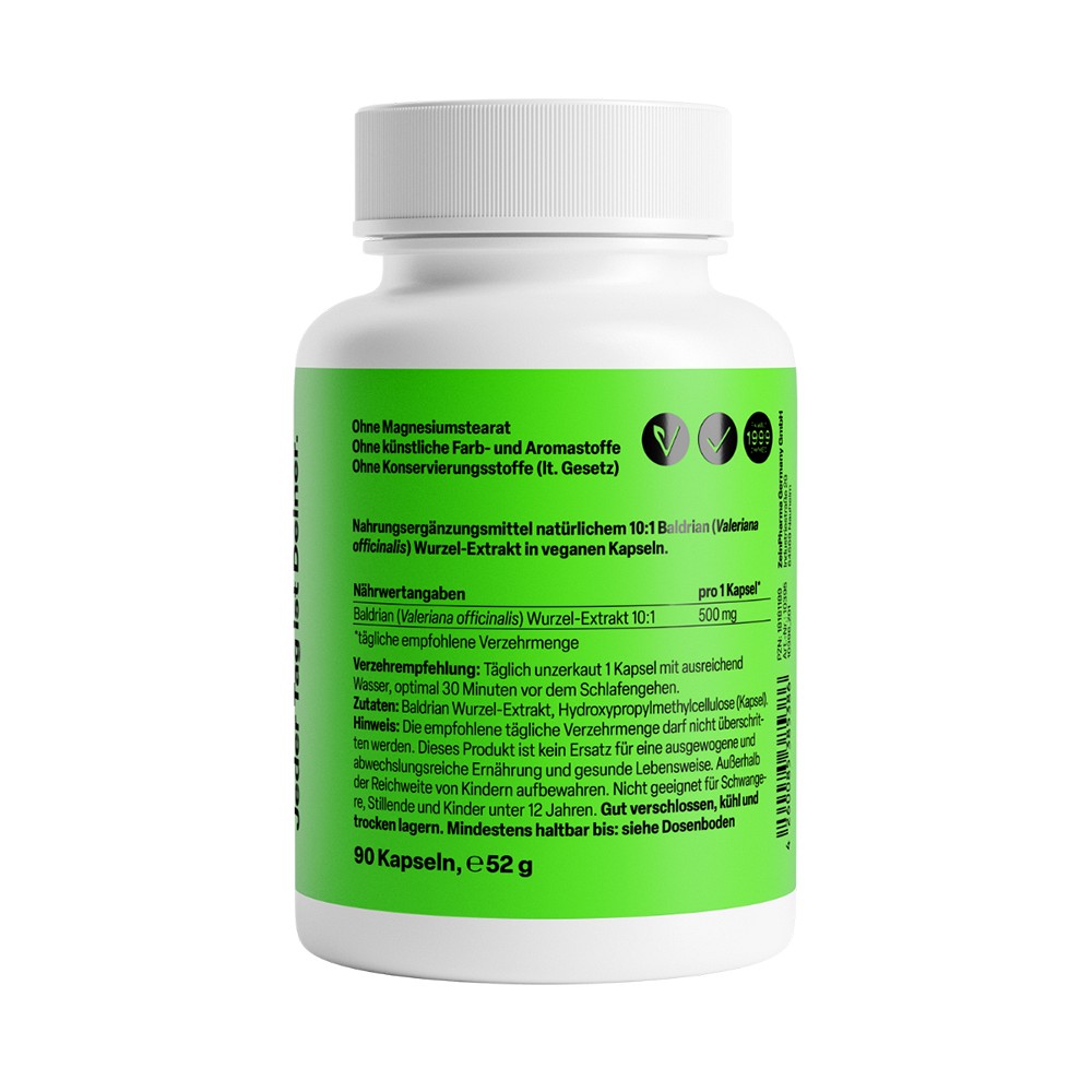 - Hochwertige Inhaltsstoffe: Unsere Baldrian 500 mg Kapseln enthalten nur 100 % reine Zutaten