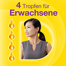 - Kinder im Alter von 4 bis 10 Jahren: 2 Tropfen (1000 I.E.) pro Tag.