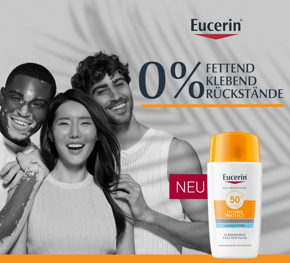 Eucerin Hydro Protect Ultraleichtes Face Sun Fluid LSF 50+ ist eine nicht fettende Sonnencreme mit leichtem Duft, die sich für die tägliche Anwendung auch bei empfindlicher Haut eignet. Die Sonnencreme ohne Mikroplastik** zieht sofort ein, klebt nicht und hinterlässt keine Rückstände.
