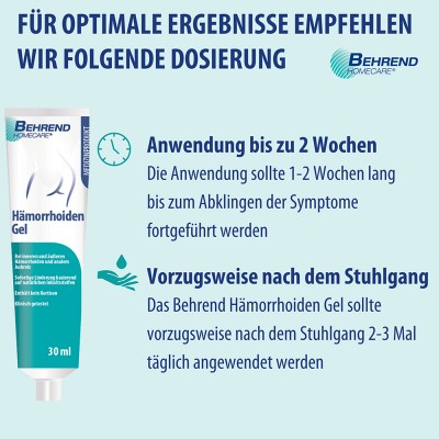 Behrend® Hämorrhoiden-Gel verringert das Anhaften von Stuhl, schützt vor Irritationen und perianaler Überlastung und ermöglicht eine schnelle Linderung bei Beschwerden.