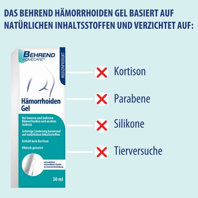 Behrend® Hämorrhoiden-Gel verringert und lindert Schmerzen, Juckreiz und Brennen.