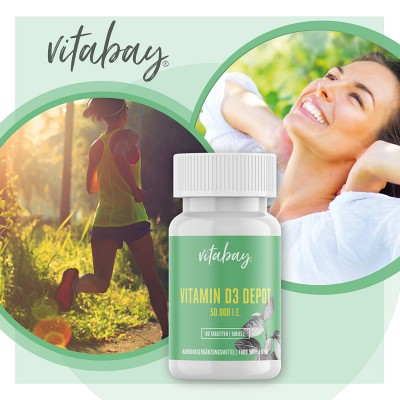 Vitamin D3 wird oft als das Multitalent unter Vitaminen bezeichnet: Neben seiner Fähigkeit, die Erhaltung normaler Knochen zu unterstützen, trägt Vitamin D3 ebenso zur normalen Funktion des Immunsystems sowie einer normalen Muskelfunktion bei und hat eine Funktion bei der Zellteilung. Unser hochdosiertes Vitamin D3-Depot 50.000 I.E. leistet eine Versorgung mit Vitamin D3 für ganze 50 Tage. Unter Einfluss von ultraviolettem Licht findet eine körpereigene Synthese des essentiellen Vitamins statt.Kommt man weniger mit Sonnenlicht in Kontakt, reicht diese Produktion im Körper nicht aus. Daher wird eine Supplementation empfohlen. Unser Vitamin D3 wird aus Flechten gewonnen und enthält keine Zutaten tierischen Ursprungs. Deshalb eignet sich das Nahrungsergänzungsmittel für Vegetarier und Veganer.