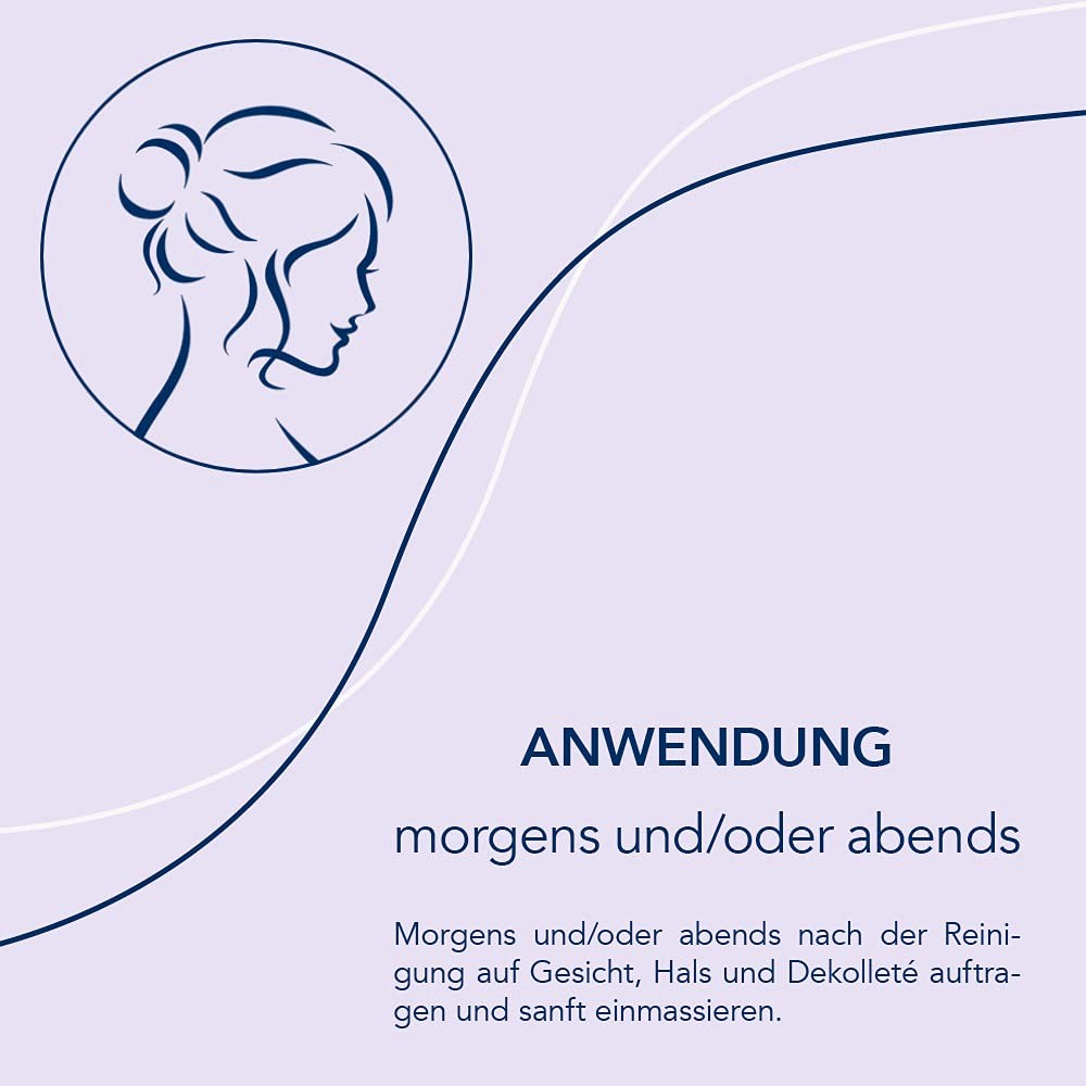 Morgens und/oder abends nach der Reinigung auf Gesicht, Hals und Dekolleté auftragen und sanft einmassieren.Ausgewählte Inhaltsstoffe/wirkt mit: