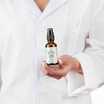 Durch den praktischen Sprühverschluss ist die BitterLiebe Forte perfekt für Unterwegs und die Handtasche geeignet.