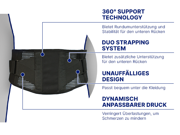 - Duo Strapping System: bietet zusätzliche Unterstützung für den unteren Rücken