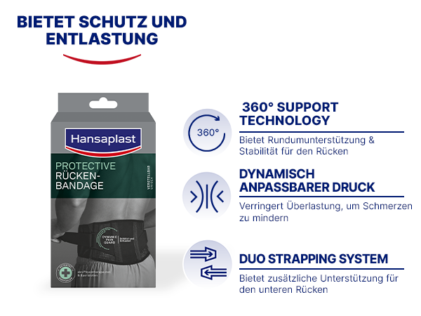 Die Hansaplast Protective Rücken-Bandage wurde von Physiotherapeutinnen und -therapeuten sowie Sportärztinnen und -ärzten intensiv getestet. Mit der Hilfe dieser Fachexpertise optimieren wir stetig unsere Produkte und damit den Nutzen für dich.Größe & Passform