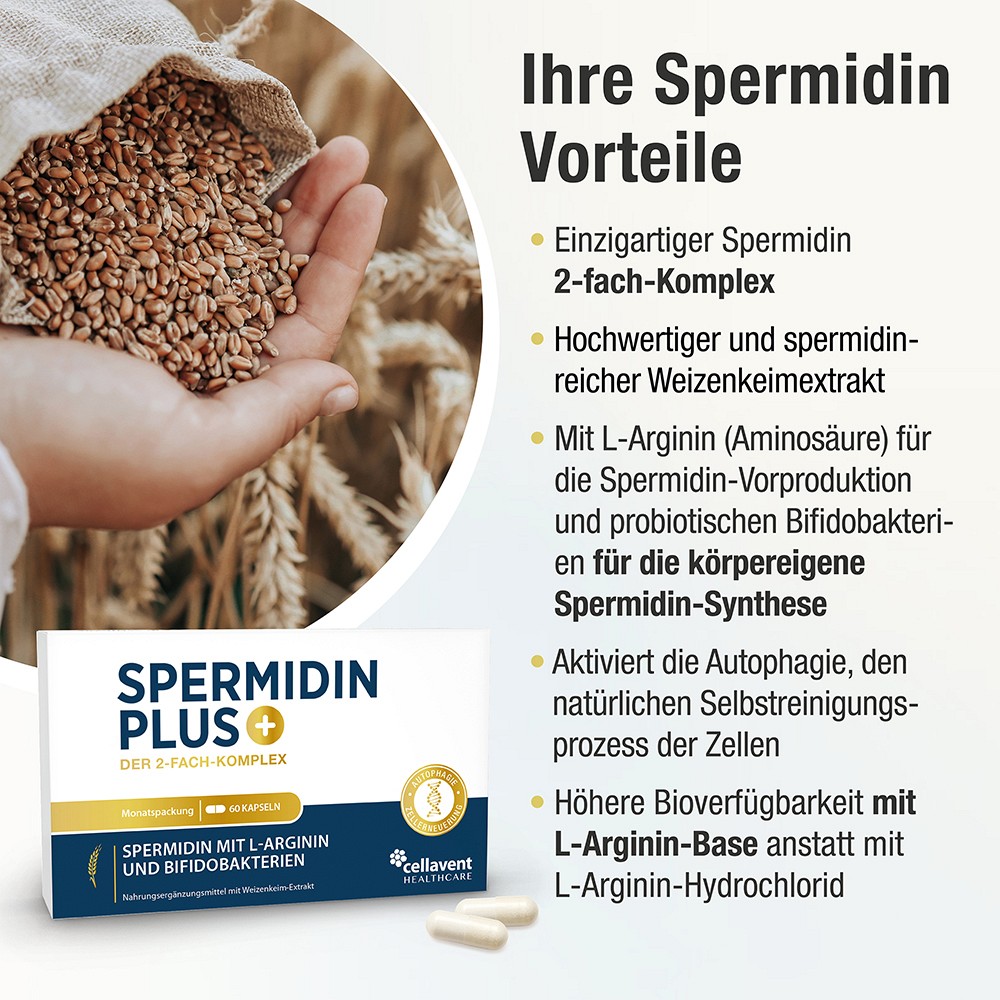 - Spermidin aus hochwertigem Weizenkeimextrakt
