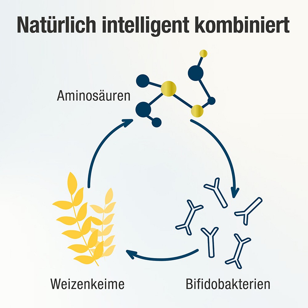 Durch die Kombination aus natürlich Spermidin-reichem Weizenkeimextrakt mit L-Arginin und Bifidobakterien versorgt Spermidin PLUS den Organismus nicht nur mit äußerlich zugeführtem Spermidin, sondern steigert auch die körpereigene Spermidin-Synthese.