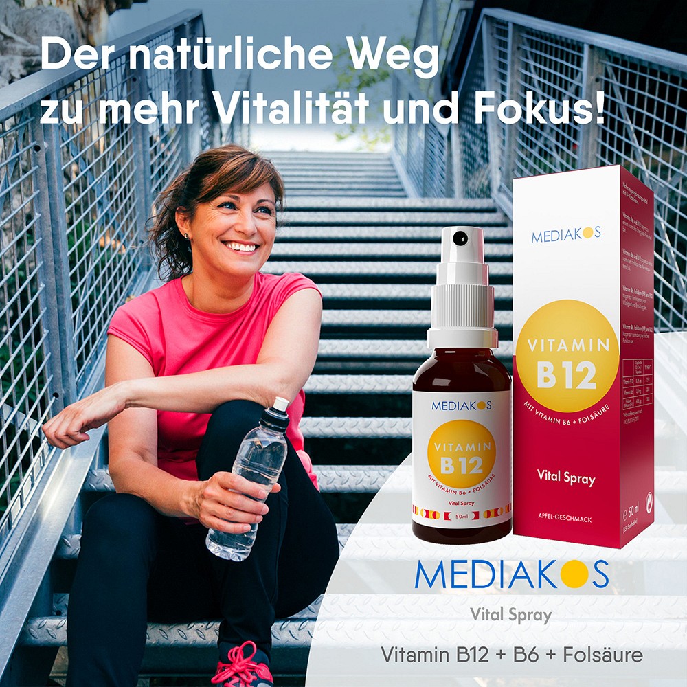 Immer mehr Menschen entscheiden sich für eine vegane Lebensweise, die nicht nur gut für die Umwelt ist, sondern auch zahlreiche gesundheitliche Vorteile bietet. Doch trotz aller Vorteile bringt diese Art der Ernährung auch besondere Herausforderungen mit sich, insbesondere im Hinblick auf die Versorgung mit bestimmten Nährstoffen. Ein kritischer Nährstoff ist in diesem Zusammenhang das Vitamin B12, das in seiner natürlichen Form vor allem in tierischen Produkten vorkommt.Unser Mediakos B12 + B6 + Folsäure Vitalspray ist die ideale Lösung für alle, die sich vegan ernähren und eine ausreichende Versorgung mit Vitamin B12, B6 und Folsäure (B9) sicherstellen wollen.