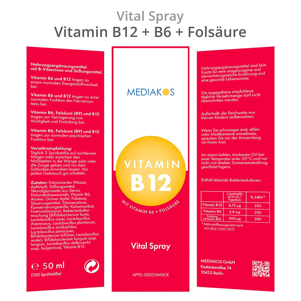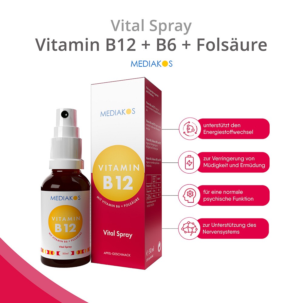 VITAMIN B12+B6+Folsäure Mediakos Vital Spray 50 ml