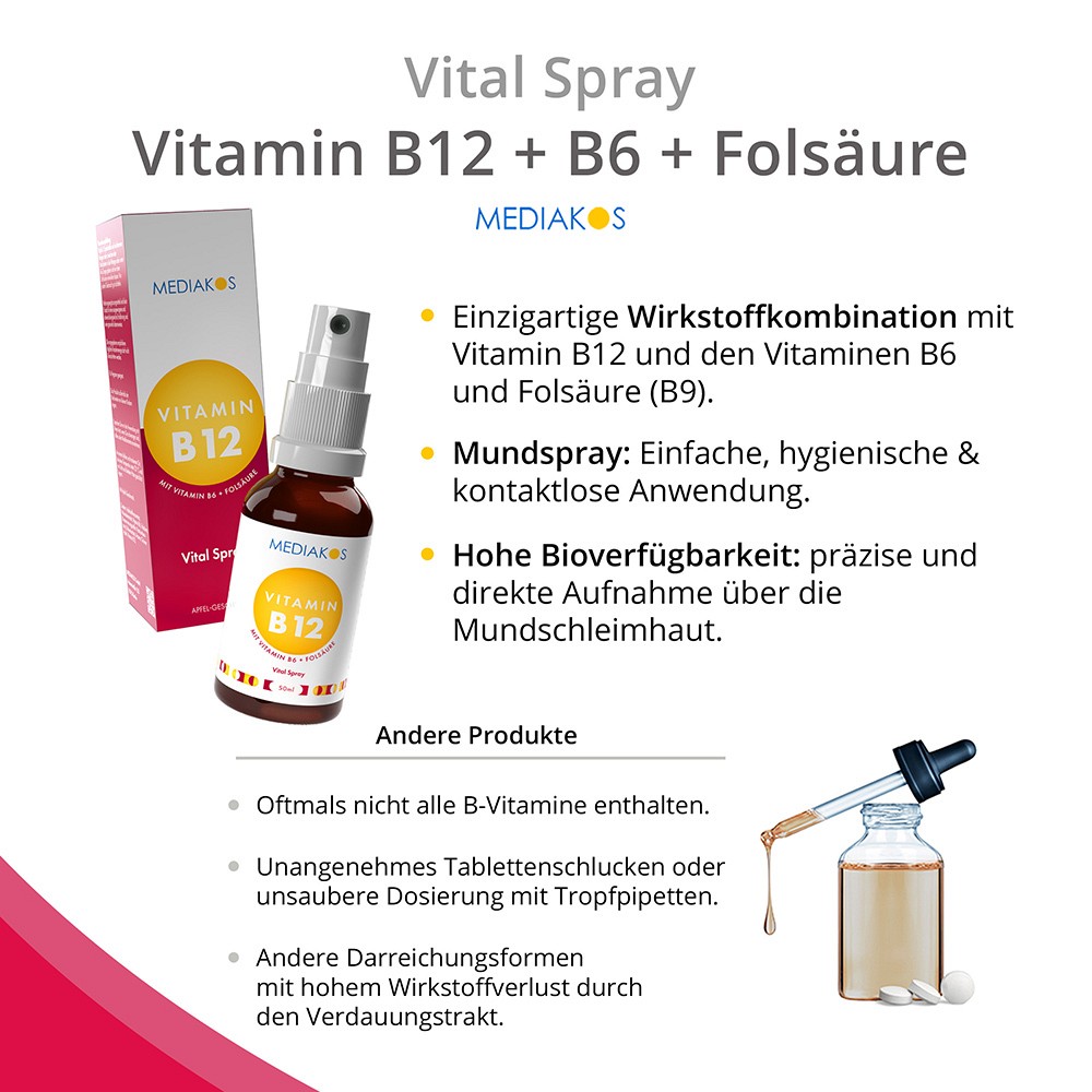 Vitamin B12 + B6 + Folsäure Mediakos Vital Spray