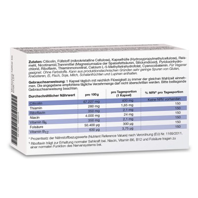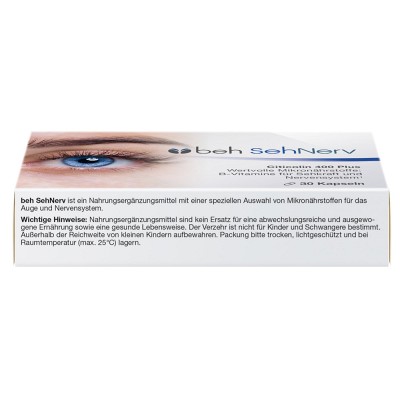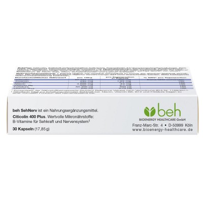 beh SehNerv ist ein Nahrungsergänzungsmittel mit speziell abgestimmter Mikronährstoffkombination.- beh SehNerv enthält Citicolin und 6 wichtige B-Vitamine: Thiamin, Riboflavin, Niacin, Vitamin B6, Vitamin B12 und Folsäure